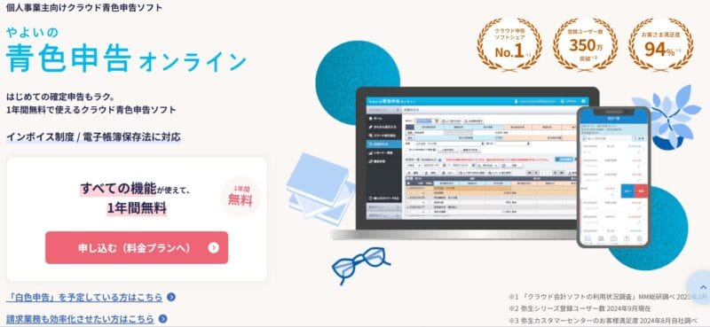 筆者が数あるソフトの中から、やよいの青色申告を選んだ最大の理由は、「圧倒的なシェアによる安心感」と「初年度無料という破格のキャンペーン」でした。